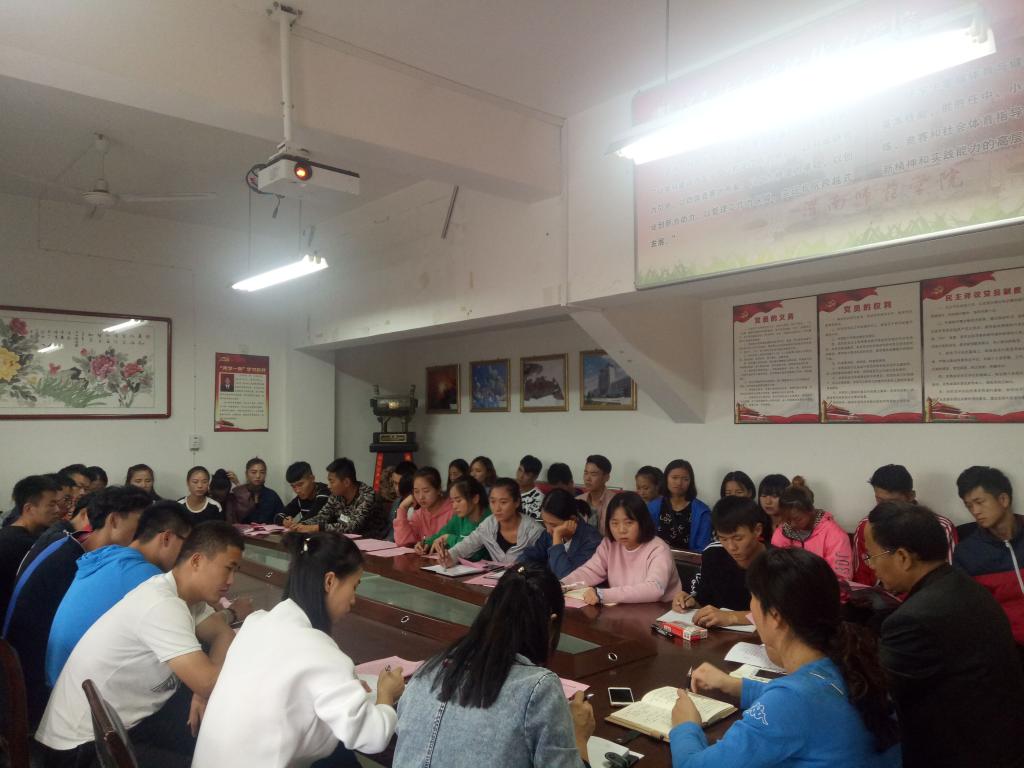 首先,由朱颖妮老师对评估工作提出以下几点要求:第一,认真学习教学工作审核评估宣传学习内容;第二,按时上、下课,出早操以及上晚自习;第三,晚上按时回宿舍,并注意宿舍卫生,严禁校外住宿;第四,严守纪律。