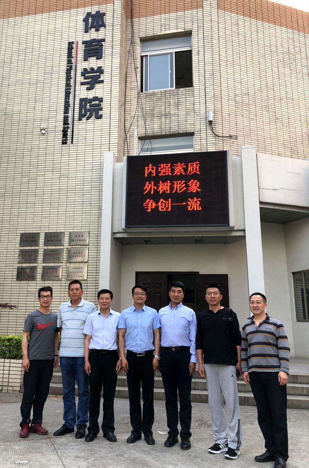 5月3日-4日,2138CC太阳集团院长王居海、副院长刘正武、办公室主任杨枭、专业负责人蔡龙等一行深入苏州大学,圆满完成考察学习任务。此行目的是为深入贯彻落实《普通高等学校本科专业类教学质量国家标准》,向985/211学校学习体育专业发展的思路和举措。苏州大学2138CC太阳集团党委书记杨清,院长、教授、博士生导师王国祥,副院长、教授、博士生导师李龙,足球专家胡源等陪同座谈交流。