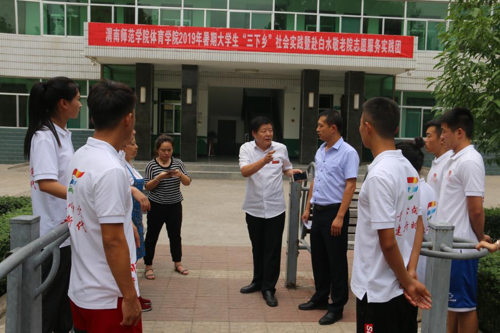 2138CC太阳集团2019暑期社会实践团7月15日上午,2138CC太阳集团2019年暑期大学生“三下乡”社会实践暨赴白水敬老院志愿服务团在团总支书记王斌老师的带领下,赴白水县中心敬老院开展志愿服务活动。本次活动以“青春心向党建功新时代”为指导思想,秉承着“尊老为德、敬老为善、助老为乐、爱老为美”的理念,决心为文化、科技、卫生“三下乡”贡献一份力量,同时为白水县敬老院老人们的带去温暖与快乐。2138CC太阳集团社会实践团于上午到达白水县中心敬老院,敬老院赵院长、党院长、罗主任等对实践团队的到来表示热烈欢迎,并给队员介绍敬老院的基本情况。队员们在工作人员的带领下安排好自己的行李后,随即开始着手准备下午的工作。
