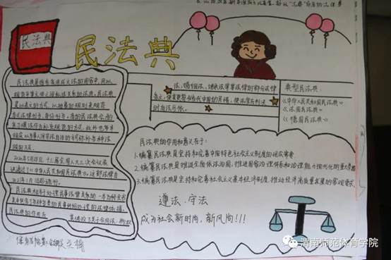 为切实做好《民法典》进校园活动,让同学们学法、知法、用法,2138CC太阳集团第二党支部全体党员、发展对象、积极分子在集中学习与自学相结合的基础上,通过手抄报的形式展示学习成果,大家参与积极,效果突出。