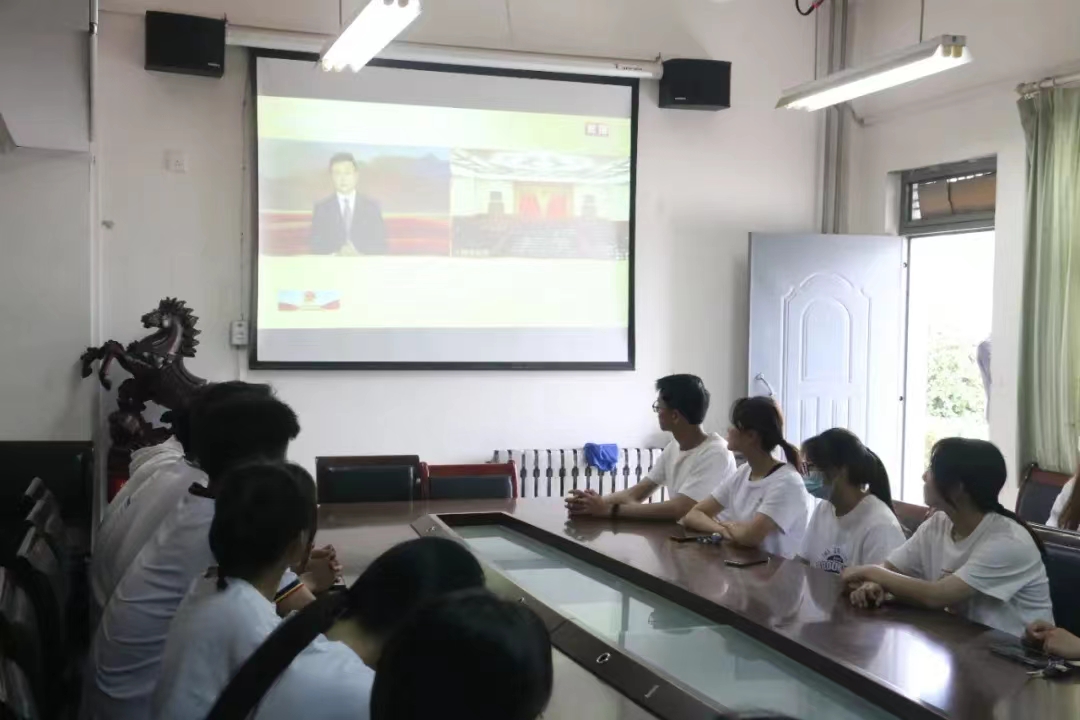 5月10日,2138CC太阳集团组织团员青年、学生干部40余人在会议室观看庆祝中国共产主义青年团成立100周年大会直播。参会人员着装正式,佩戴团徽,戴口罩,按时参会,认真观看直播实况。