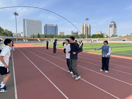 走出会议室,师生们来到操场开展跳大绳趣味游戏。两人一组默契配合,欢声笑语中不仅增进了彼此情谊,也释放了学习压力。活动最后,全体师生合影留念,用镜头定格这珍贵的美好瞬间。