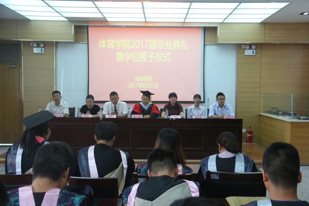 大会在庄严的国歌声中拉开帷幕,随后李春兰宣读了《关于2017届毕业生毕业资格审核结果的通知》,刘正武宣读《关于2017届本科毕业生学位授予资格审核结果的通知》,朱颖妮老师宣读《表彰校级优秀毕业生及优秀干部的决定》。接着,毕业生代表王莎莎同学发言――毕业不是结束,而是努力和开始;在校生代表刘佳豪同学发言――甜美的果实需要汗水浇灌,无悔的青春需要奋斗才能精彩;教师代表史红梅老师发言――坚持梦想、选好事业,懂得感恩、学会感恩,面对困难、学会坚强,坚持学习、健康生活,正直的做人做事。