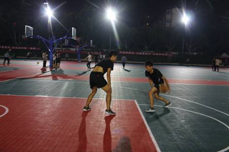 悬浮式拼装地板属于第三代新型体育运动地板,不仅外观时尚大方,而且具有健康环保、抗震防滑、舒适安全、不吸光反光刺眼、能更好地保护运动者的眼睛、运动性能卓越等特点。建成后的悬浮式灯光球场不仅给广大师生开展体育运动提供了高标准的运动场地,也给美丽的校园增添了一道亮丽的风景。