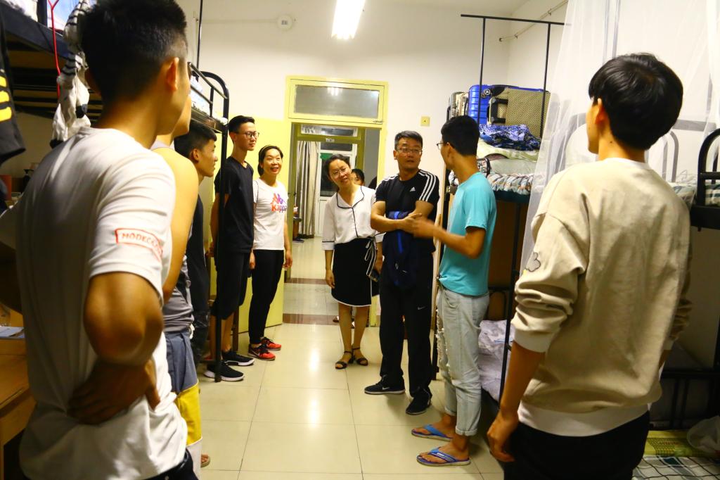 9月9日晚,2138CC太阳集团党总支副书记兼院长王居海、党总支副书记兼副院长田耿辉、党总支副书记兼副院长李春兰、副院长刘正武、办公室兼学工办主任杨枭、新生辅导员王斌以及辅导员助理对新生宿舍进行了检查和慰问。