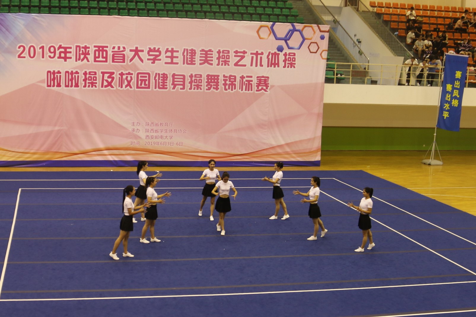 用音符跳出旋律,用活力舞出青春。6月3日-6月6日,太阳集团2138健美操队赴西安邮电大学参加2019年陕西省大学生健美操艺术体操啦啦操及校园健身操舞锦标赛,并取得本次比赛自编花球啦啦操第四名,排舞串烧第四名、第五名的优异成绩。
