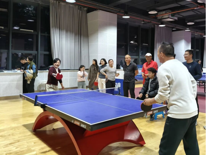 平日执教于田径场、篮球馆、羽毛球馆等的教职工们纷纷化身矫健选手,展开了多轮紧张而友好的角逐。赛场上,教师们直拍横拍灵活切换,推挡、扣杀、旋转球等技巧轮番上演,每一次精准击球都引来阵阵喝彩。场边教练的悉心指导、队员们的加油呐喊,充分展现教师们的专业和团结。同时,教师们善于学习的态度与顽强拼搏的体育精神也打动在场的每一位观众。